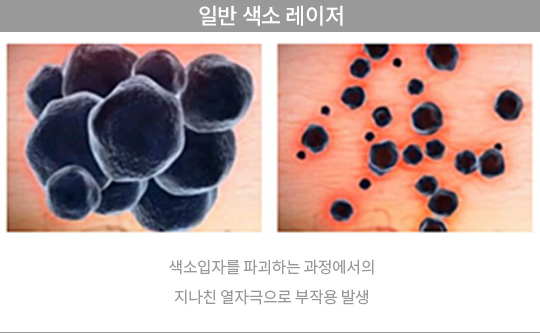 주변 조직의 손상 없이 효과적으로 멜라닌 색소 및 문신의 잉크 입자만을 파괴합니다.